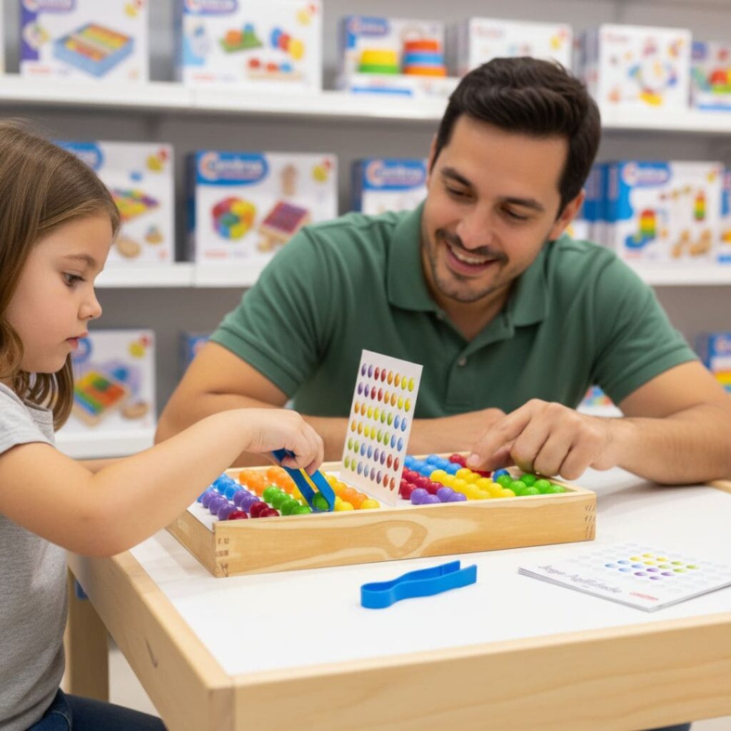 - Aumento do Tempo de Permanência: Uma criança engajada é um pai relaxado. Enquanto a criança está focada em um desafio tátil, os pais têm tempo para olhar outras prateleiras, aumentando o valor do carrinho de compras.