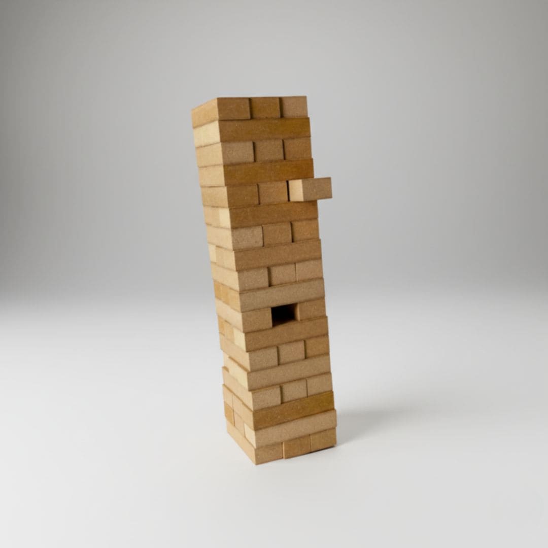54 peças em MDF medindo 70mm X 23mm X 15mm.